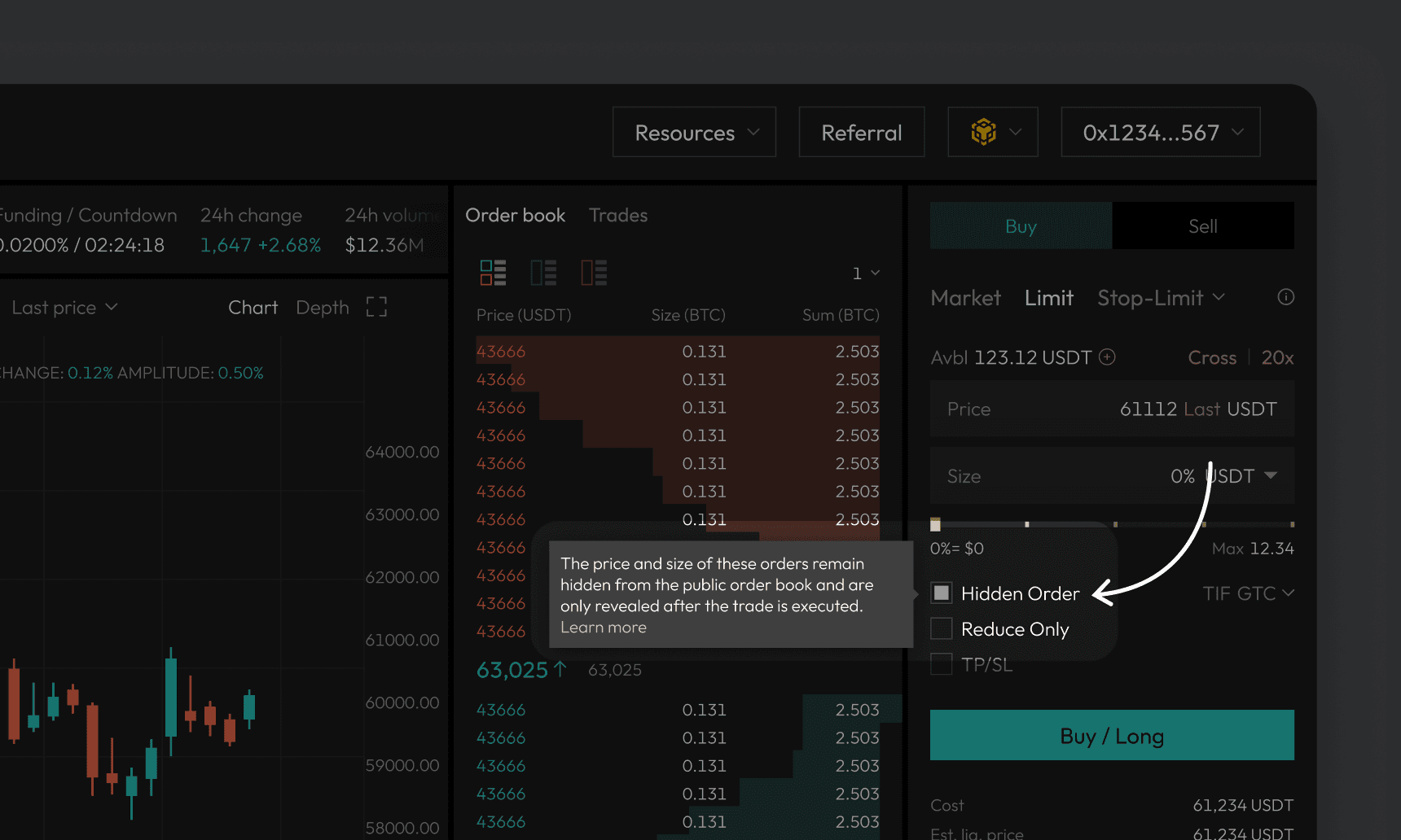 A tooltip on the Hidden Order checkbox