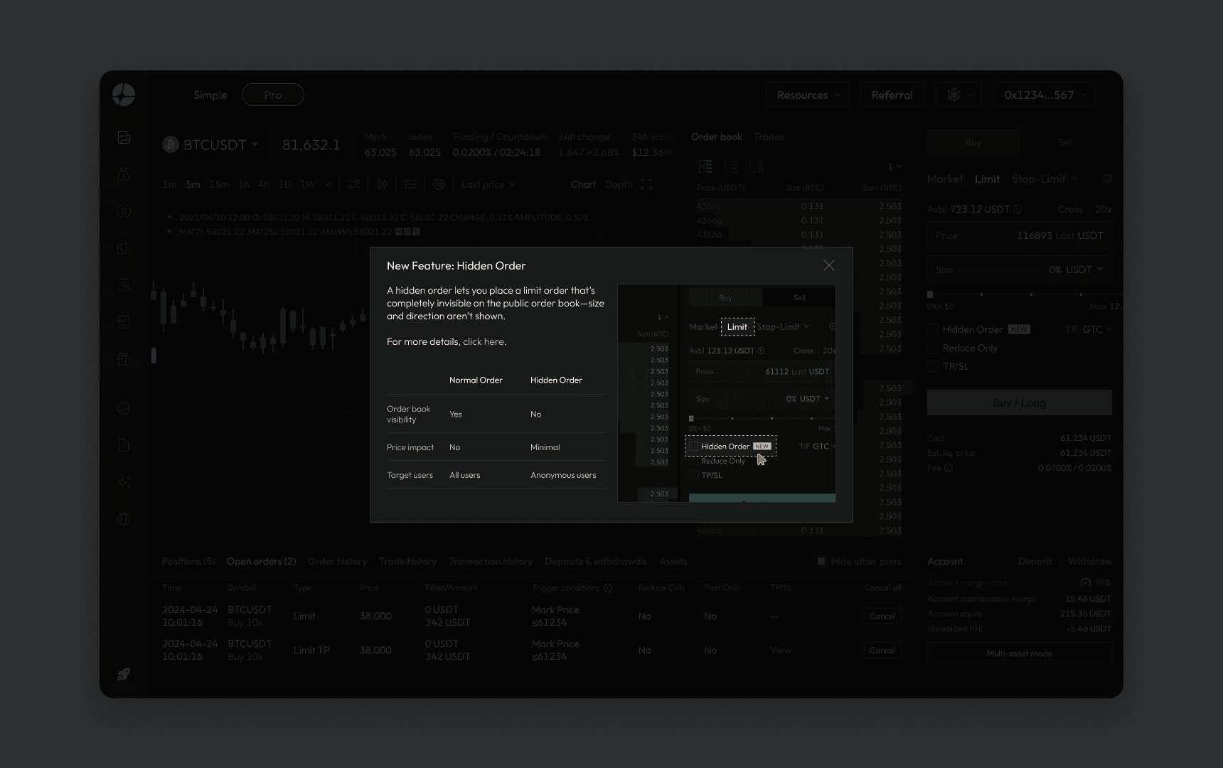 Hidden Order is only available in Pro Trade